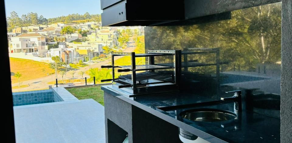 São 4 suítes mais uma suíte de empregada, garagem para 4 carros no subsolo, cozinha com armários planejados, coifa e ilha. Boa Vista nos quartos, sala, fachada e piscina, lareira na gigante sala de estar, escadas de mármore Travertino Romano, piscina com borda infinita ao lado da churrasqueira e do quintal, a vista é incrível. Casa em condomínio Fechado, oferece para você o máximo do conforto e da segurança, contate nossos corretores e venha visitar