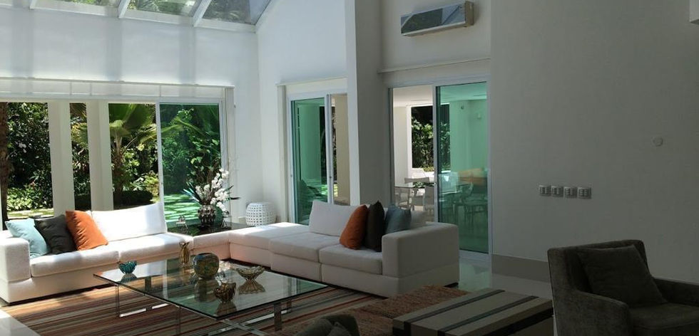 - Mobiliário refinado da Artefacto, em um espaçoso living para 3 ambientes com pé direito duplo.